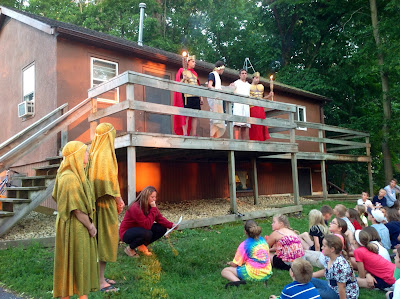 Chapel's may be one of the best parts of camp after kids have woken up a little bit and are energized for the day. Especially around Thursday, kids know the songs and their participation and excitement contagious, and hopefully you are able to see that in the "undignified" video above. Thursday's theme is based on Zacchaeus and today's message at chapel came from the perspective of a 12 year old who's family would need to pay taxes to Zacchaeus. So the monologue went through the hard feelings of being in a family who had their money stolen from Zacchaeus and then seeing the transformation in Zacchaeus after he encountered Jesus.